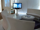 WT Hotel introduces the visitor with a new dimension where reality is being transformed. The architecture and the interior design becomes animated and alive like a living organism that pulses, breathes, lightens and communicates. Walking along the long corridor of luminescent fringes, like a submerged world, the visitor enters the Hall where the desk lightens itself emphasizing the vegetal motive. The suite is an oasis of prosperity that welcomes the guests in an environment with clean and essential lines as well as smooth, warm and natural surfaces. The white, neutral and relaxing space, as all the environments in WT Hotel, comes in to life and interacts with the visitors, stimulating their sensory and emotions.